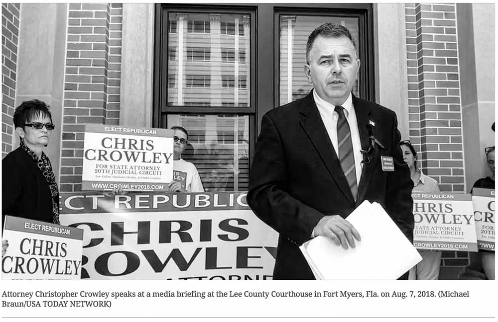 The Florida Bar’s version of this rule was applied to Mr. Crowley when he ran in 2018 for the state’s 20th Judicial Circuit State Attorney against Amira Fox.