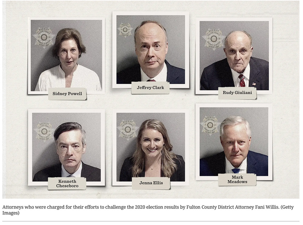 Sidney Powell and her lawyer, Lawrence Joseph, are also facing various repercussions from advancing claims and lawsuits related to the 2020 election results. Ms. Powell was sued by voting machine companies over accusations she made that the 2020 election was rigged against President Trump and was also indicted in the Georgia RICO case along with the former president, Mr. Eastman, Mr. Clark, Mr. Giuliani, lawyer Kenneth Cheseboro, lawyer Jenna Ellis, former White House Chief of Staff Mark Meadows, and others.