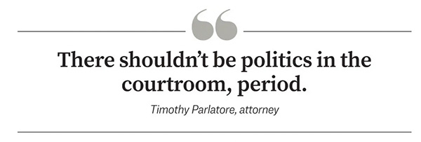Mr. Parlatore warned that the politicization of law could have reverberating effects. He said it would be a “dangerous situation for justice” if only conservative attorneys could represent conservatives and conservative causes, and only liberal attorneys could represent those same figures and pursuits on the left.