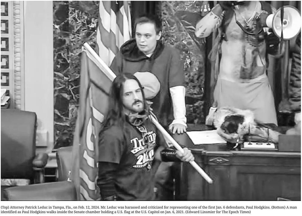 Since Mr. Leduc operates a private law firm in Tampa, Florida, he was shielded from any threats to his job for representing Paul Hodgkins, one of the first Jan. 6 defendants to plead guilty for his part in the Capitol riots.