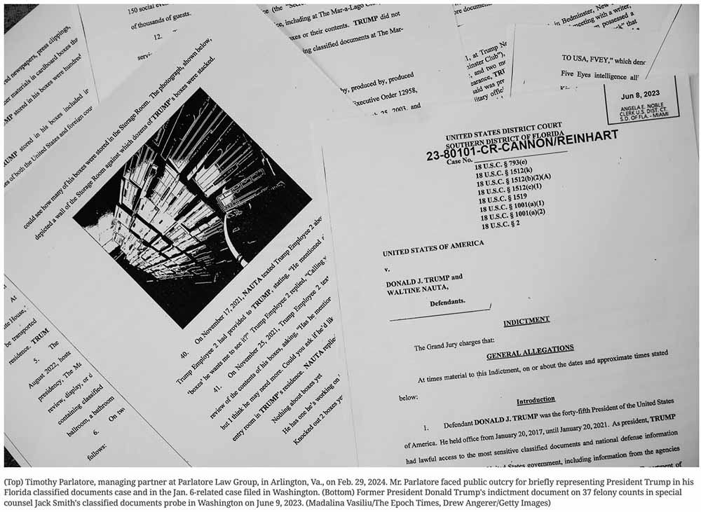 Mr. Parlatore spent more than a year representing President Trump in his Florida classified documents case and in the Jan. 6-related case filed in Washington, D.C. He told The Epoch Times that after speaking on cable news, he received death threats in voicemails and emails from “wackos who, just because I didn’t say what they wanted to hear, [think] that I should be killed.”