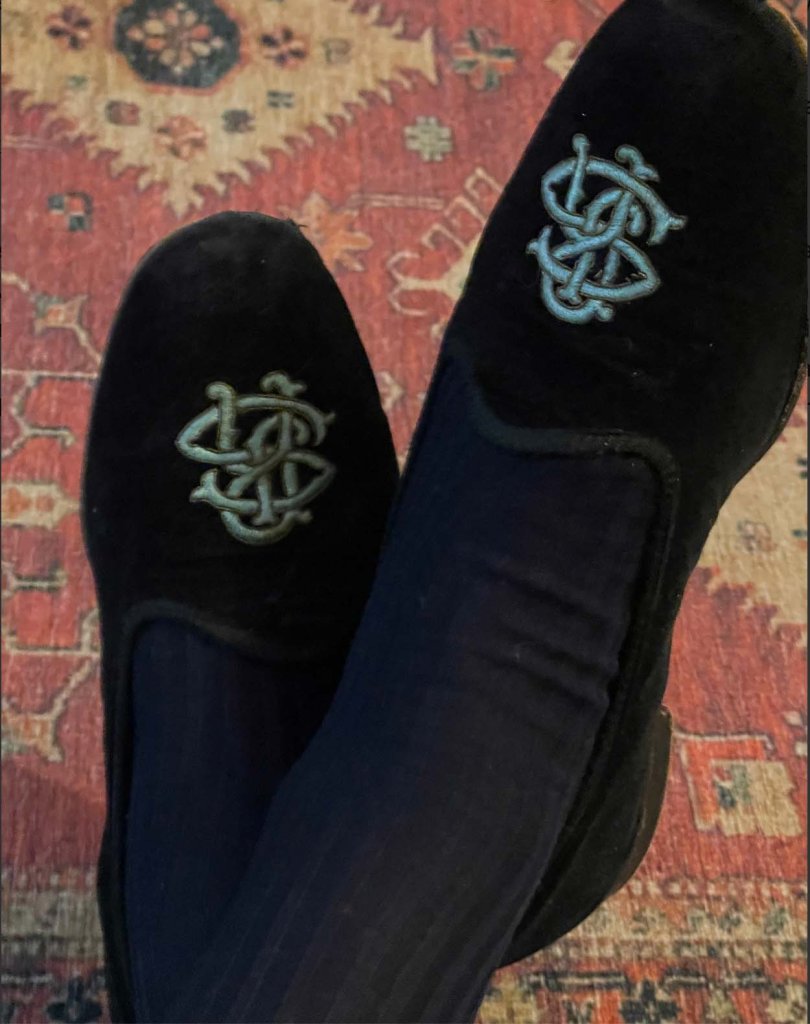A monogrammed velvet bedroom slipper is an indulgence if you can afford it. The best are made by Stubbs & Wootton. They can produce a slipper to your personal specifications and do so quickly and are extremely reliable but not inexpensive. Lower price brands can be found on eBay and Etsy. These can be worn in the home or with socks and jeans. Those that I own were custom-made thirty years ago by John Locke – I could scarcely afford them today.