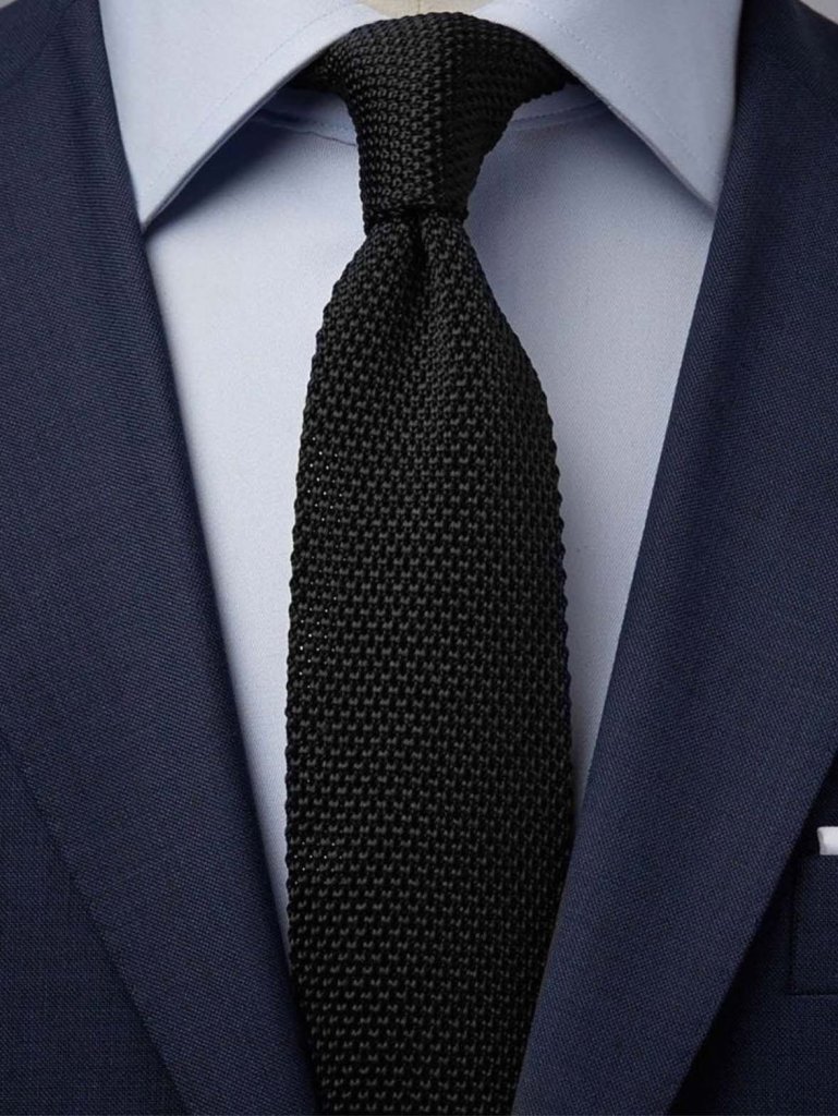 The four-inch-wide neckties of the 40s and again in the 70s lack elegance, and as John F. Kennedy, Cary Grant, Sean Connery, and David Niven proved; a trim, elegant knot can be smashing. Connery wore such a solid black knit tie with a three-piece nailhead gray suit as James Bond in Goldfinger—it’s perfection.