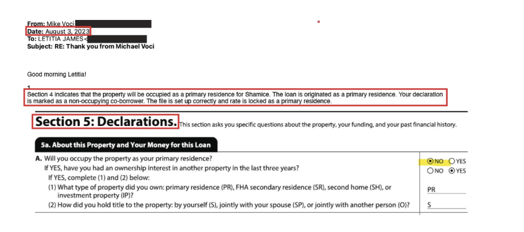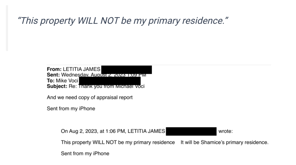 On August 2, 2023, Letitia James sent an email to her mortgage broker about a Virginia property she was purchasing. The message was unambiguous (Click on any image to view it in a larger size):