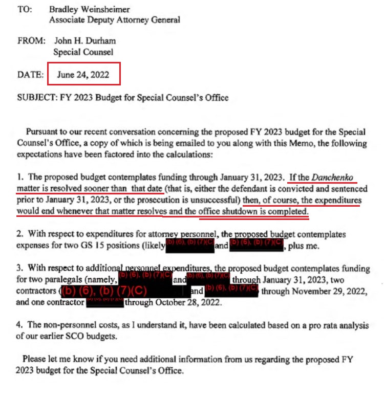 Notice how John Durham is saying as soon as he gets the Danchenko issue completed, it’s all over; “the office shutdown will be completed.”