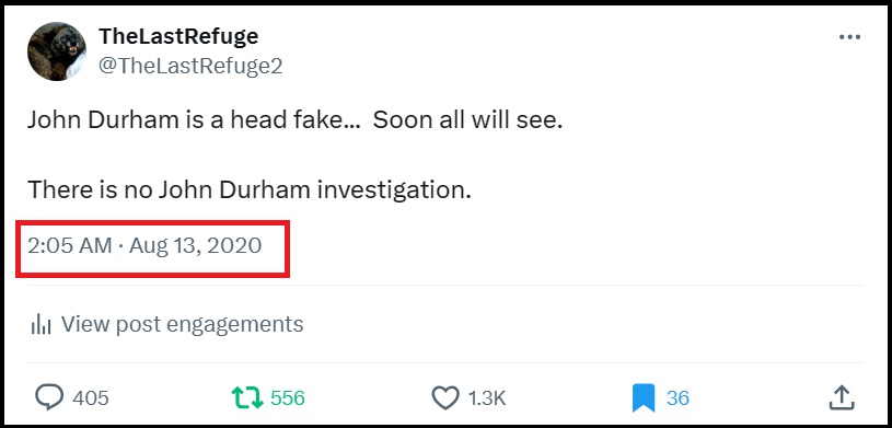 In August of 2020 I sent this tweet to the general public after a lengthy discussion with John Durham’s lead investigator:
