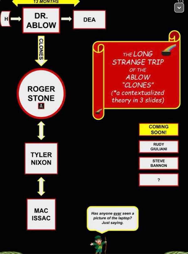 Morris alleges that Ablow created ‘clones’ of this laptop, sending copies to Roger Stone, who then worked to get a ‘clone’ of the laptop to Rudy Giuliani’s legal team. Rare had the opportunity to speak with Roger Stone about this matter. Stone categorically denied ever having possession of a laptop, or a ‘clone’ of the laptop. Stone asserted that all of his knowledge on the Hunter Biden laptop came from the report from the New York Post that prompted their suspension from Twitter in 2021.