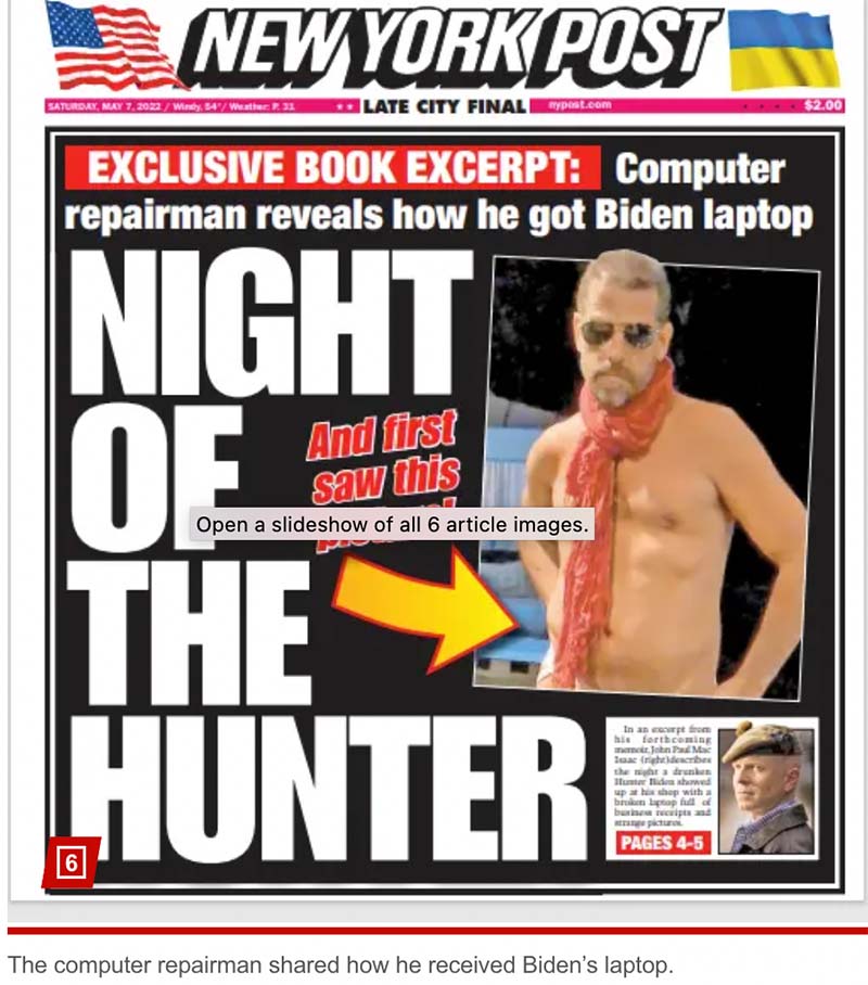 The publication date of the column corroborates the time stamp of the video, created 23 days after Hunter left his second laptop with Ablow.