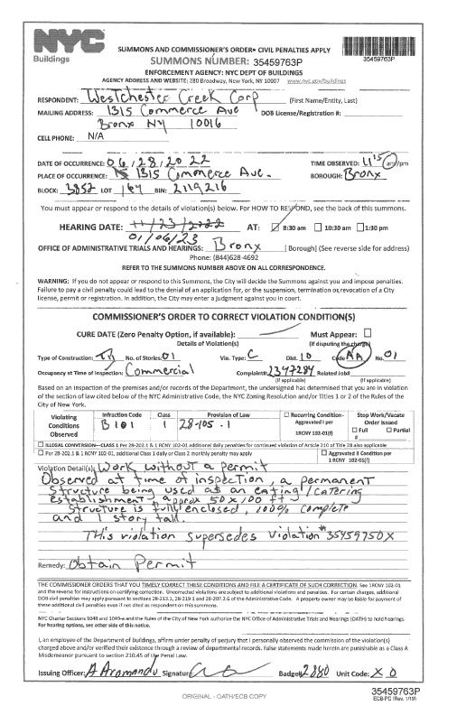 On June 28, 2022 the back room was in place without a permit. This “permanent structure” is being used without it.