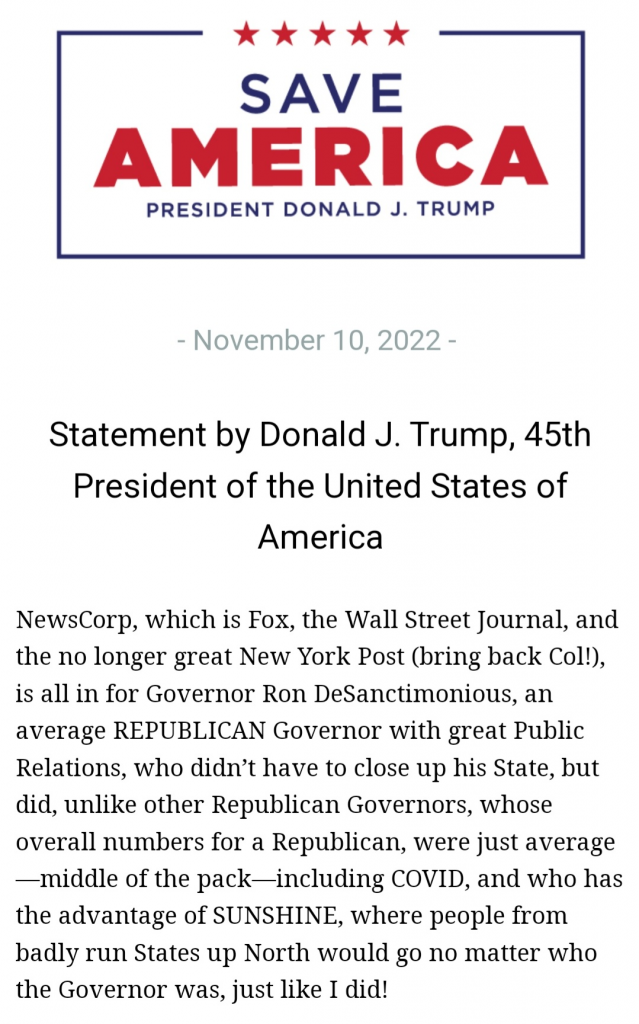President Trump isn’t pretending. He’s targeting Florida Governor Ron DeSantis because President Trump, like us, can clearly see the nature of the construct that has been manufactured to oppose the MAGA movement. This is a fight for the future of the Republican party.