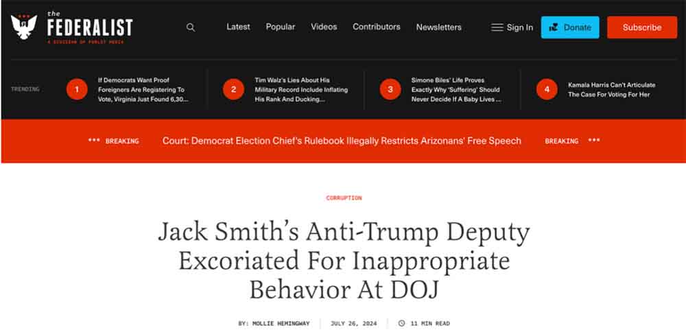 JACK SMITH’S ANTI-TRUMP DEPUTY EXCORIATED FOR INAPPROPRIATE BEHAVIOR AT DOJ