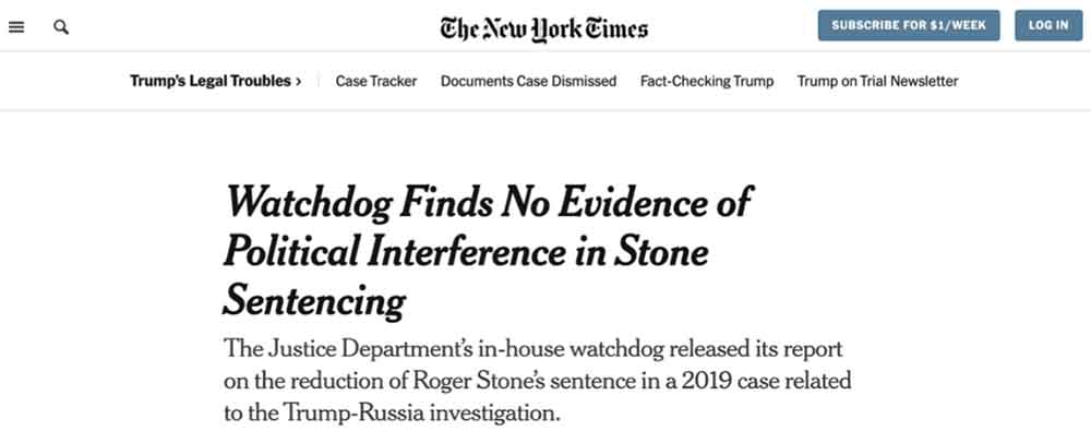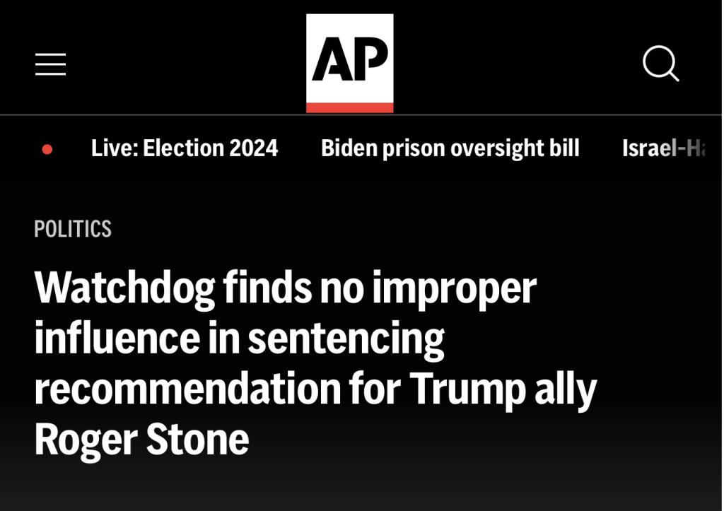 WATCHDOG FINDS NO EVIDENCE OF POLITICAL INTERFERENCE IN STONE SENTENCING