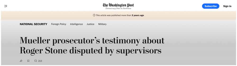 MUELLER PROSECUTOR’S TESTIMONY ABOUT ROGER STONE DISPUTED BY SUPERVISORS