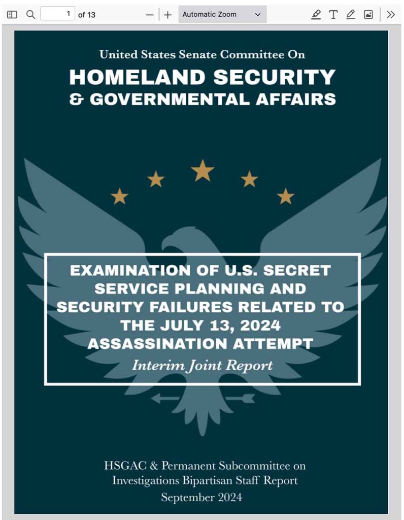 The Senate report comes just days after the Secret Service released a five-page document summarizing the key conclusions of a yet-to-be finalized Secret Service report on what went wrong, and ahead of a Thursday hearing that will be held by a bipartisan House task force investigating the shooting.