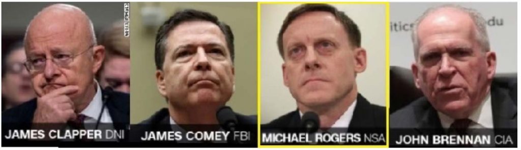 The proof is in their own action: ♦Remember CIA Director John Brennan got caught, and later apologized, for using his agency to spy on congress (SEE HERE), for political purposes. ♦Then there’s the Director of National Intelligence, James Clapper, who admitted to lying to congress (SEE HERE) for political purposes. ♦Lastly, FBI Director James Comey who admitted to leaking his memo content to the New York Times for political purposes.