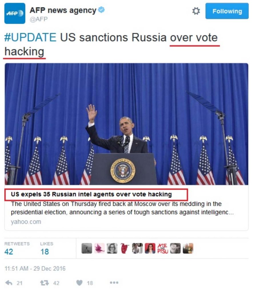 […] The US intelligence community has concluded that a hack-and-release of Democratic Party and Clinton staff emails was designed to put Trump — a political neophyte who has praised Putin — into the Oval Office.