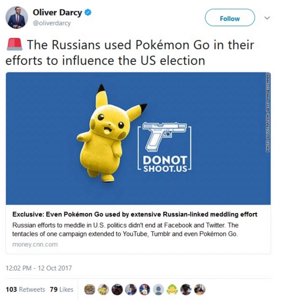 It’s been almost a year, and to this date there is no-more evidence of Russian interference in the 2016 election than there was a year ago. Well, other than some ridiculous claims about Russian bots on Twitter (that did nothing), purchased Facebook advertising (to help Clinton), and CNN claiming that Pokemon Go was part of the Russian conspiracy.