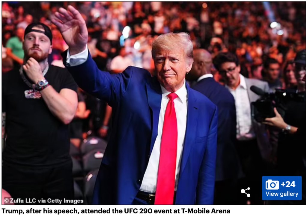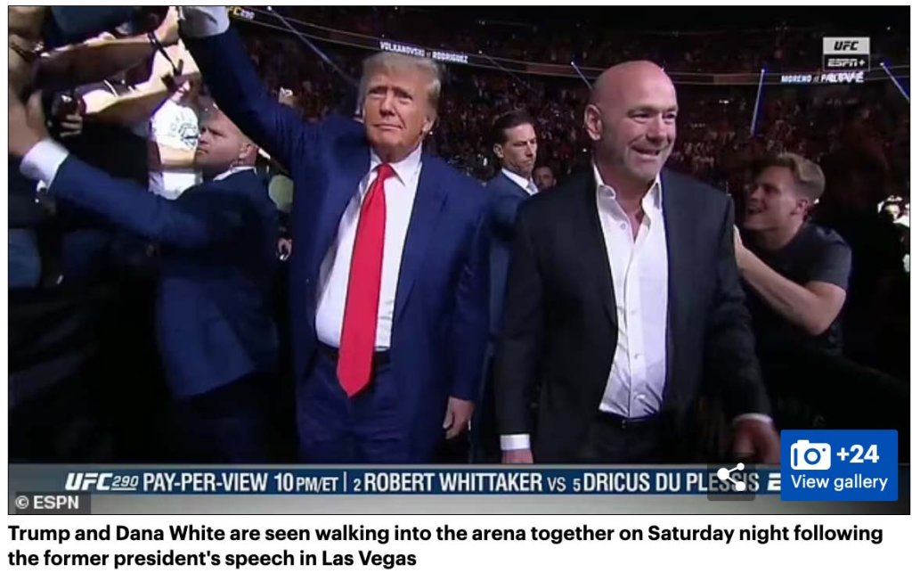 He then went to a UFC match at the T-Mobile arena with Dana White, president of UFC; Roger Stone, veteran Republican operative; and Mel Gibson.
