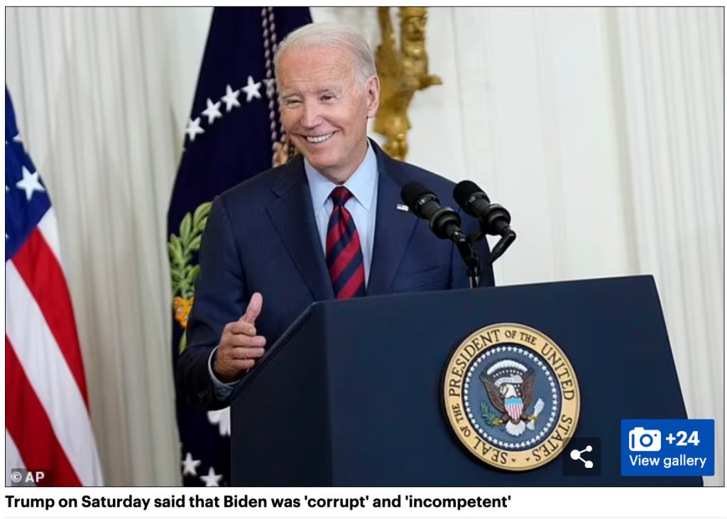 Donald Trump has accused Joe Biden of being a ‘corrupt, incompetent leader’ who has been ‘compromised’ by China and Ukraine.