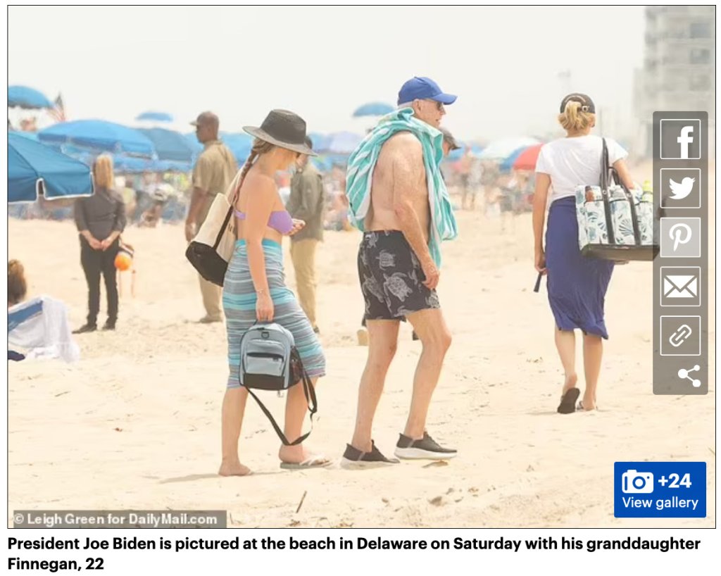 It comes as Biden was seen on Saturday at the beach near his Delaware home, soaking up the sun with his wife Jill and 22-year-old granddaughter Finnegan.