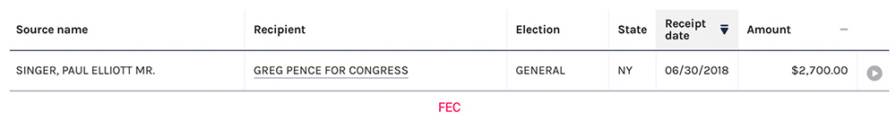 See Singer’s donation to Pence below,