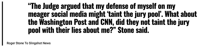Stone noted that like Trump he had also been unconstitutionally gagged by a federal judge in his case. The Judge, Amy Berman Jackson, even extended the gag order to Stone’s immediate family, an aspect that was later overturned by the D.C. Appeals Court.