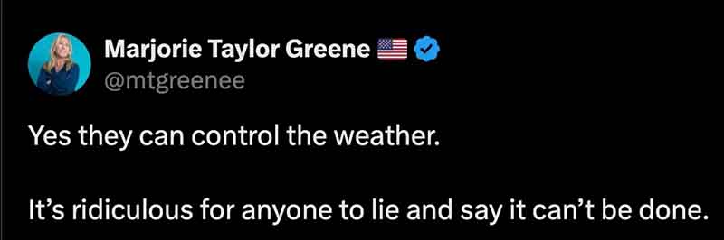So, the next time you see a hurricane that defies logic or a wildfire that incinerates everything but the trees, remember it might not be “Mother Nature” at all. It might be the “elites” using the weather to control populations and assert global dominance.